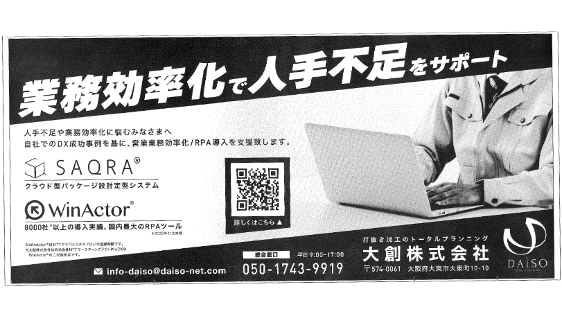 業務効率化をお手伝いする、「SAQRA®」と「WinActor®」の新広告が掲載されました。